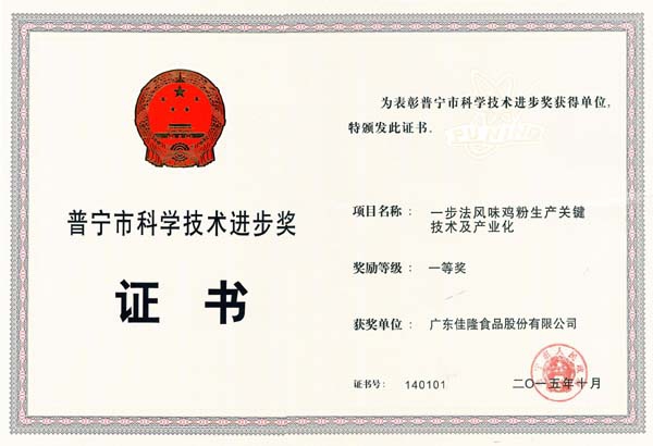 醇真雞粉系列::高新技術(shù)產(chǎn)品證書2015